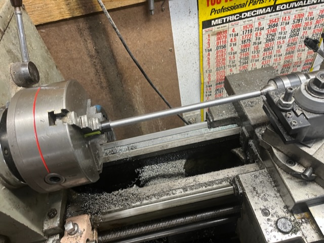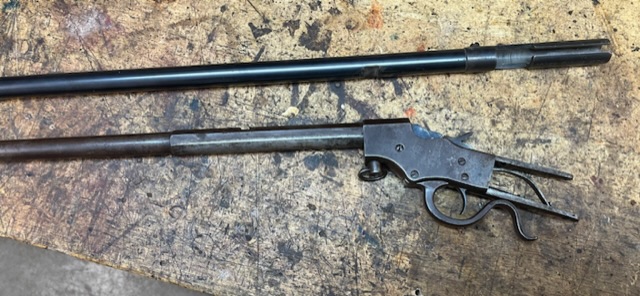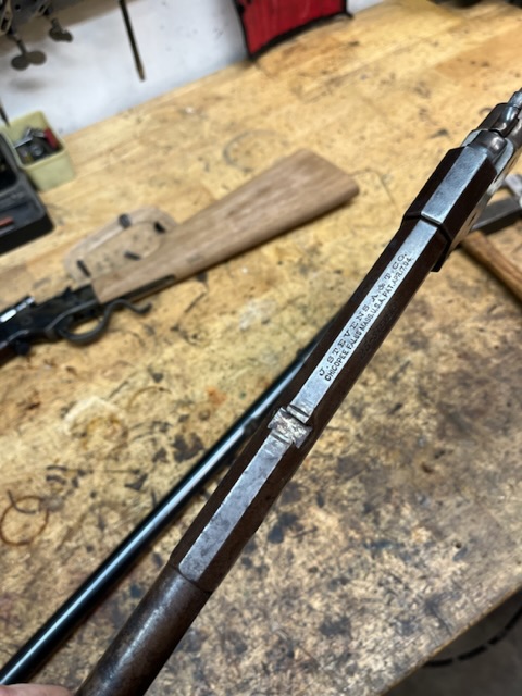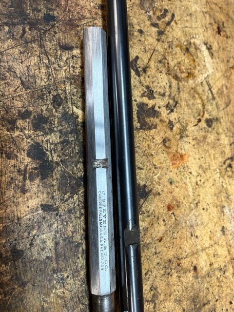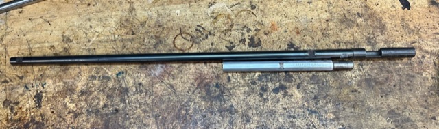 Yesterday I got inspired to reline some barrels. The main barrel is a Stevens Favorite barrel that I plan using to build a ladies rifle. The first task was to extend the octagon by 2 inches. I cut the barrel 2” ahead of the octagon, cut the 2” round section down to 5/8” dia. I took a piece of steal bar and drilled it to 5/8” and epoxied this on to the barrel. I cut the new section to octagon. I also did a bit of welding to fill marks in the barrel. I drilled the barrel out to 7/16”. Then I took a Cooey model 75 barrel with a really nice bore and cut it off at 26” long, turned down the barrel to 7/16” dia for the length of the stub I made and then glued the octagon stub on the barrel. Next up is to trim the barrel, chamber it and cut it for the extractor. I also drilled and lined a Marlin 1889 barrel and epoxied in a 25-20 Redman liner.