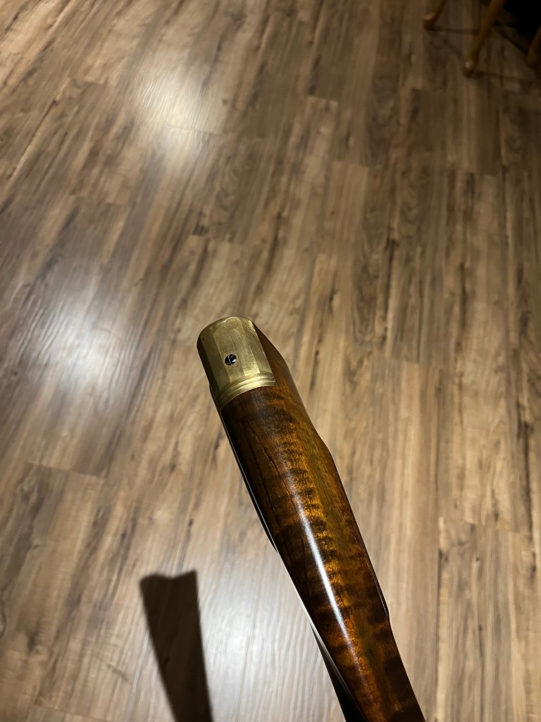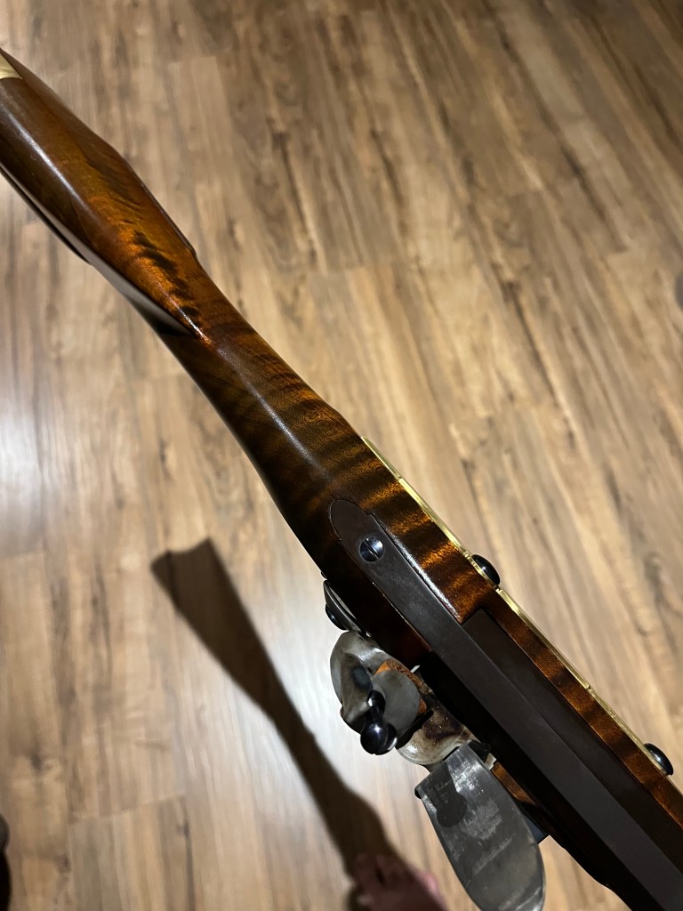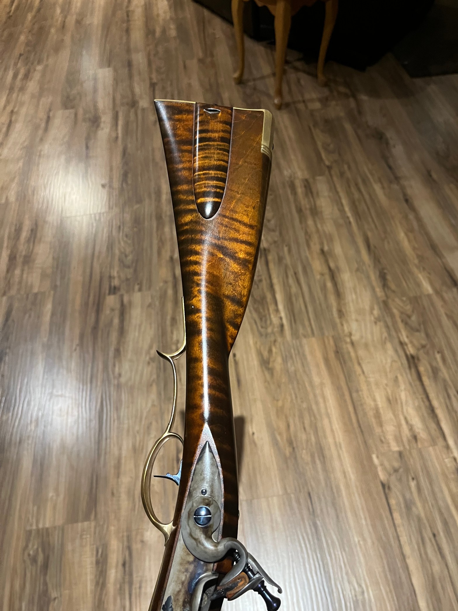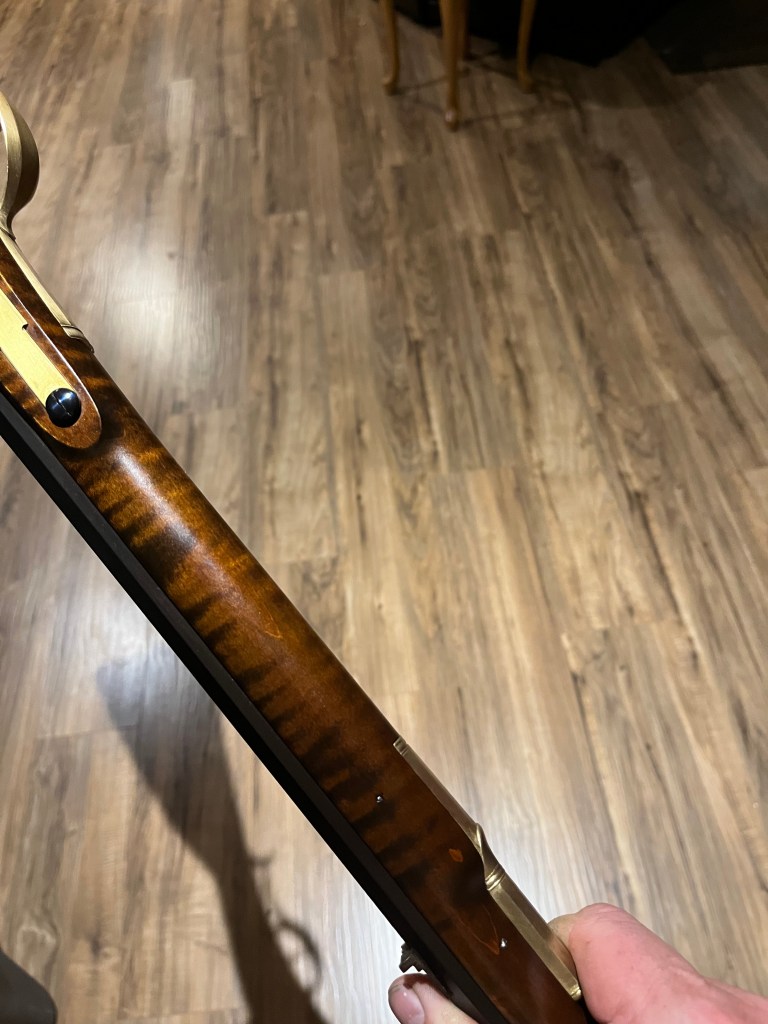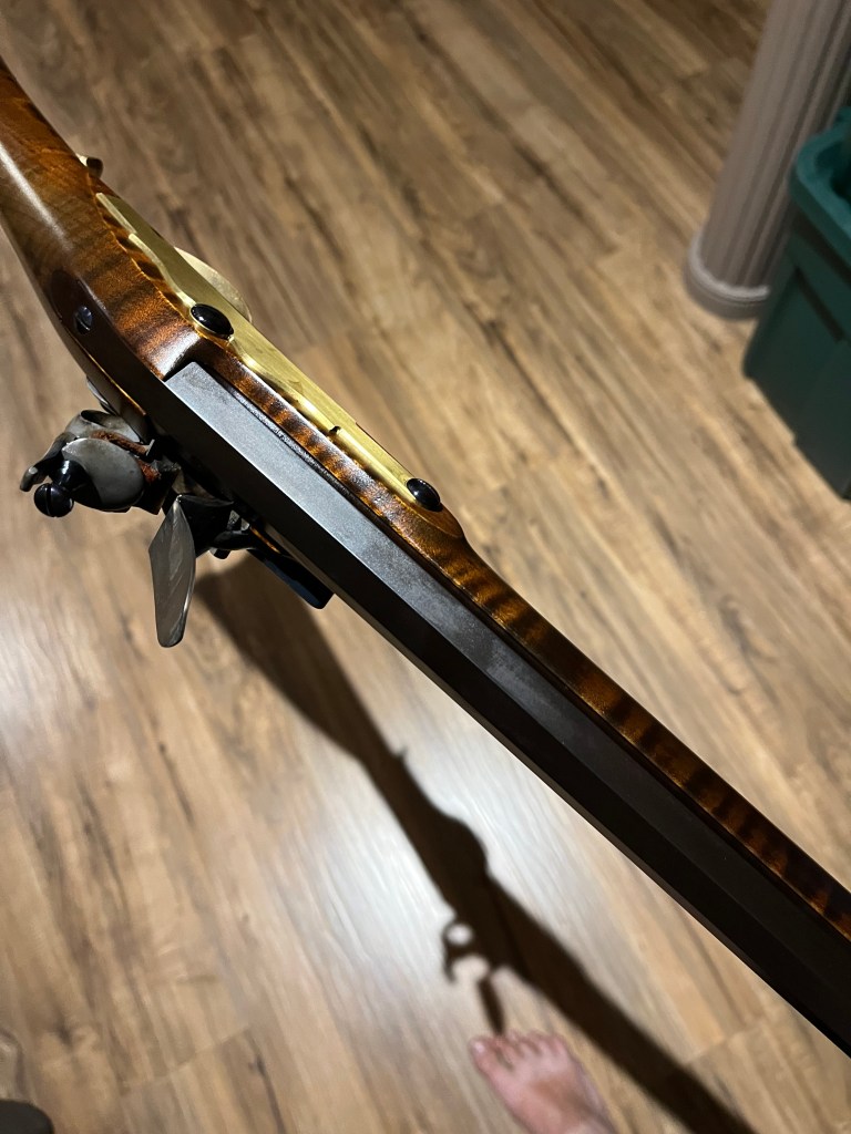 I purchased a 50 cal Woodsrunner from Kibler. It has fancy maple stock but was a B-grade discounted due to a stain on the stock and a small crack infront of the lock. The stain pretty much disappeared when I applied the Aquafortis. The crack I filled with Brown CA glue and you have to look pretty close to find it now. I shot the rifle this week and it is going to be a keeper. I put the normal barrel sights on it but my eyes can’t see the rear sight very well anymore, I am thinking it is going to get a lollipop peep soon.