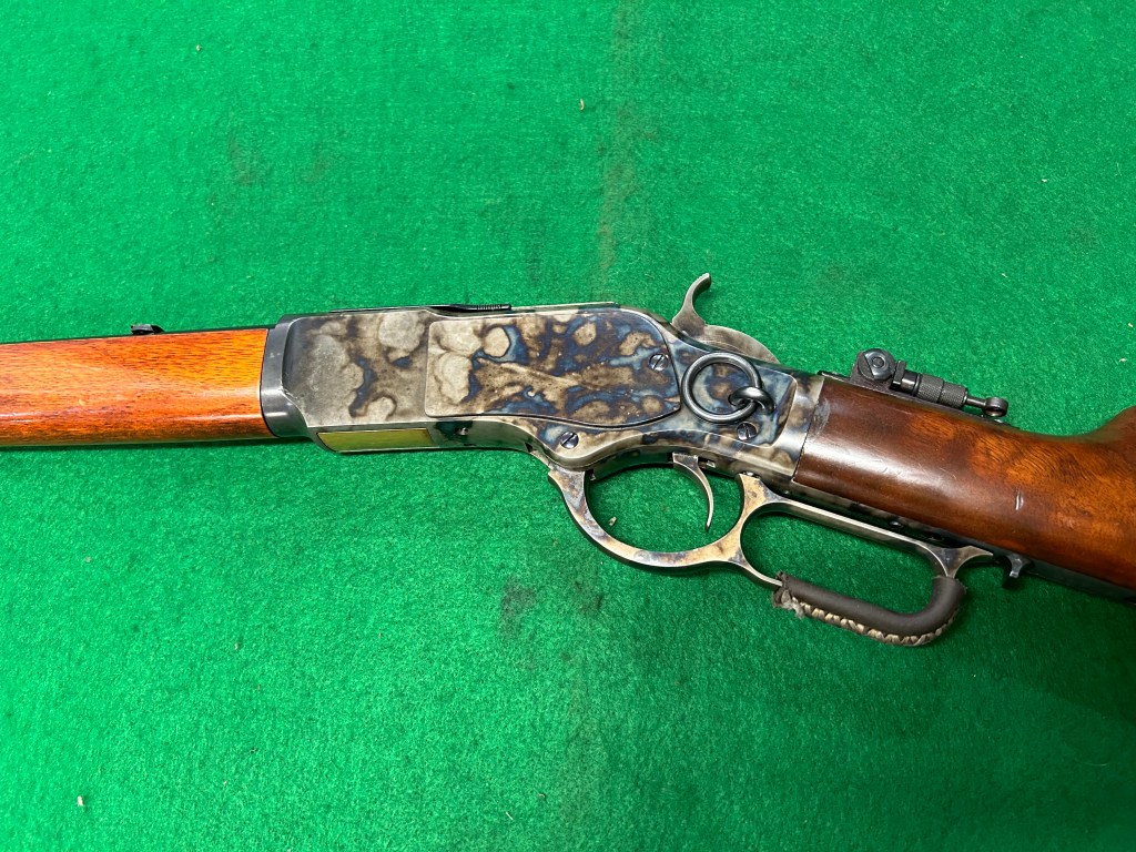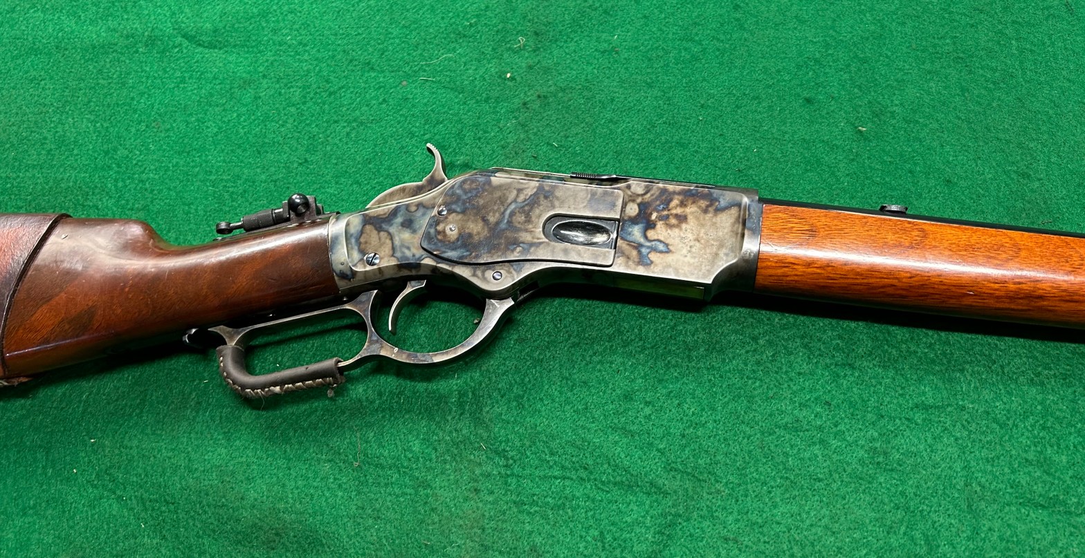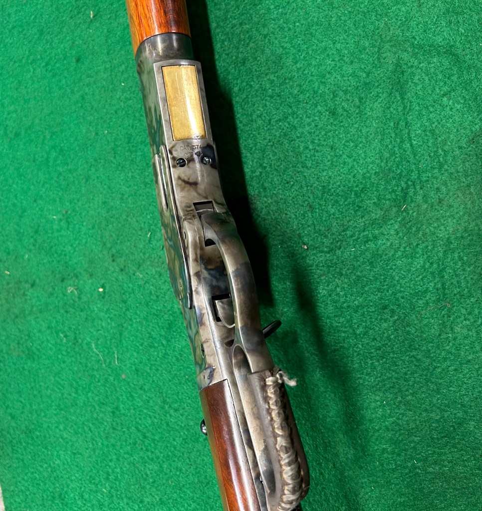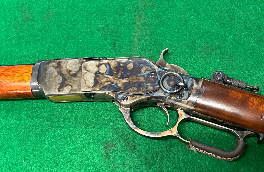 Today I casehardened a Uberti 73 Winchester with a friend of mine. It was a blued rifle but I just had to see what it would look like casehardened. I am glad my buddy let me change it. I think it looks much better now.