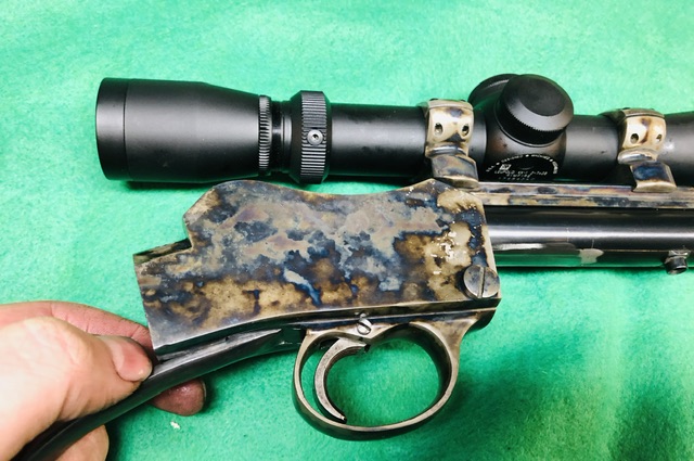 My favourite gopher gun is a small frame Martini that I put a 17 HM2 barrel from a TC Contender carbine. The wood was walnut from Windsor plywood. This little rifle is a laser. I case hardened the action and the scope rings. The 17 hm2 is an under appreciated cartridge, I have both 17 hmr and this rifle and this one, for small game like gophers I think the 17 mach 2 is best. It is quite, flat shooting and less costly to shoot.